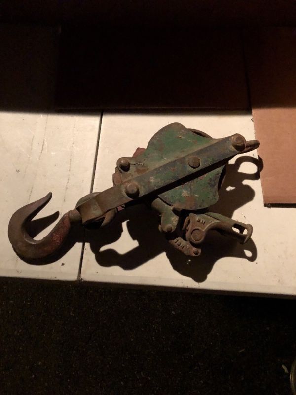 Title (ebay affiliate link): Lg Vintage Heavy Duty Metal Double Pulley Block and Tackle with Cast Iron Hook