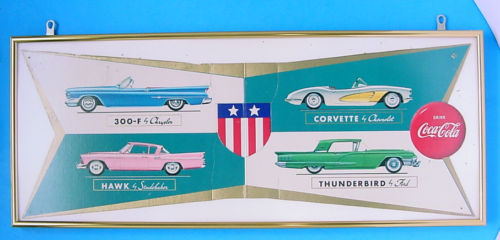 Title (ebay affiliate link): 1950s FESTOON COCA-COLA CHRYSLER 300-F STUDEBAKER HAWK CORVETTE FORD THUNDERBIRD