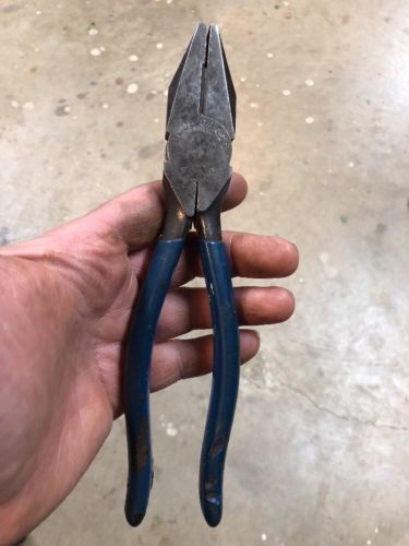 VINTAGE BLUE GRASS HARDWARE LINESMAN SIDE CUTTER PLIERS 433-8 USA MADE TOOLS!!!!