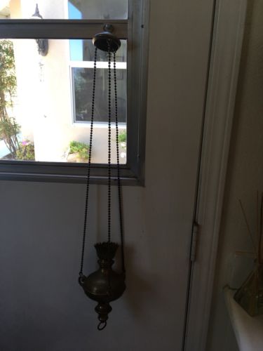 Title (ebay affiliate link): Antique Brass Hanging Candle Holder Primitive Lamp NR