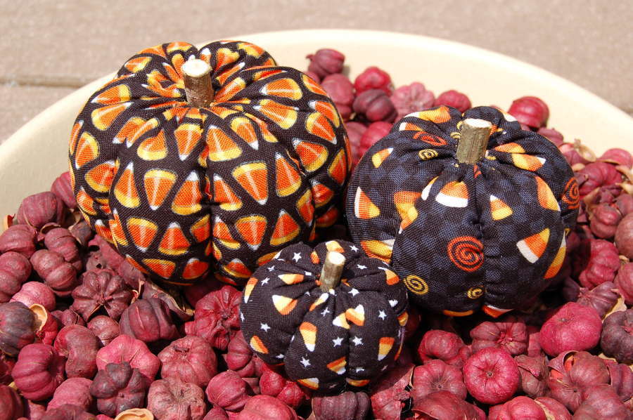 Title (ebay affiliate link): Primitive Fall Halloween Black Candy Corn Print Pumpkin Ornies, 3 Diff Prints