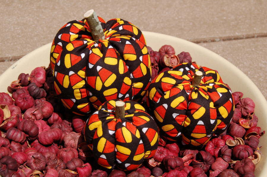Title (ebay affiliate link): Primitive Fall Halloween Black Candy Corn Print Pumpkin Ornies, 3 Diff Sizes