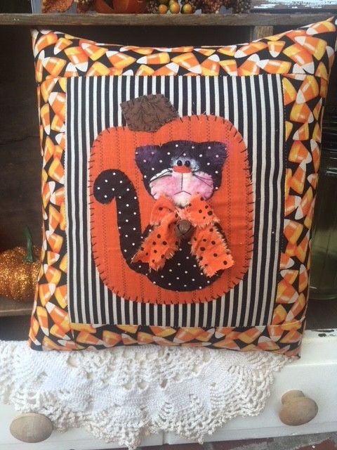 Title (ebay affiliate link): Primitive Sweet Halloween/Fall Kitty Pumpkin Pillow #1*GracieLouOriginals*