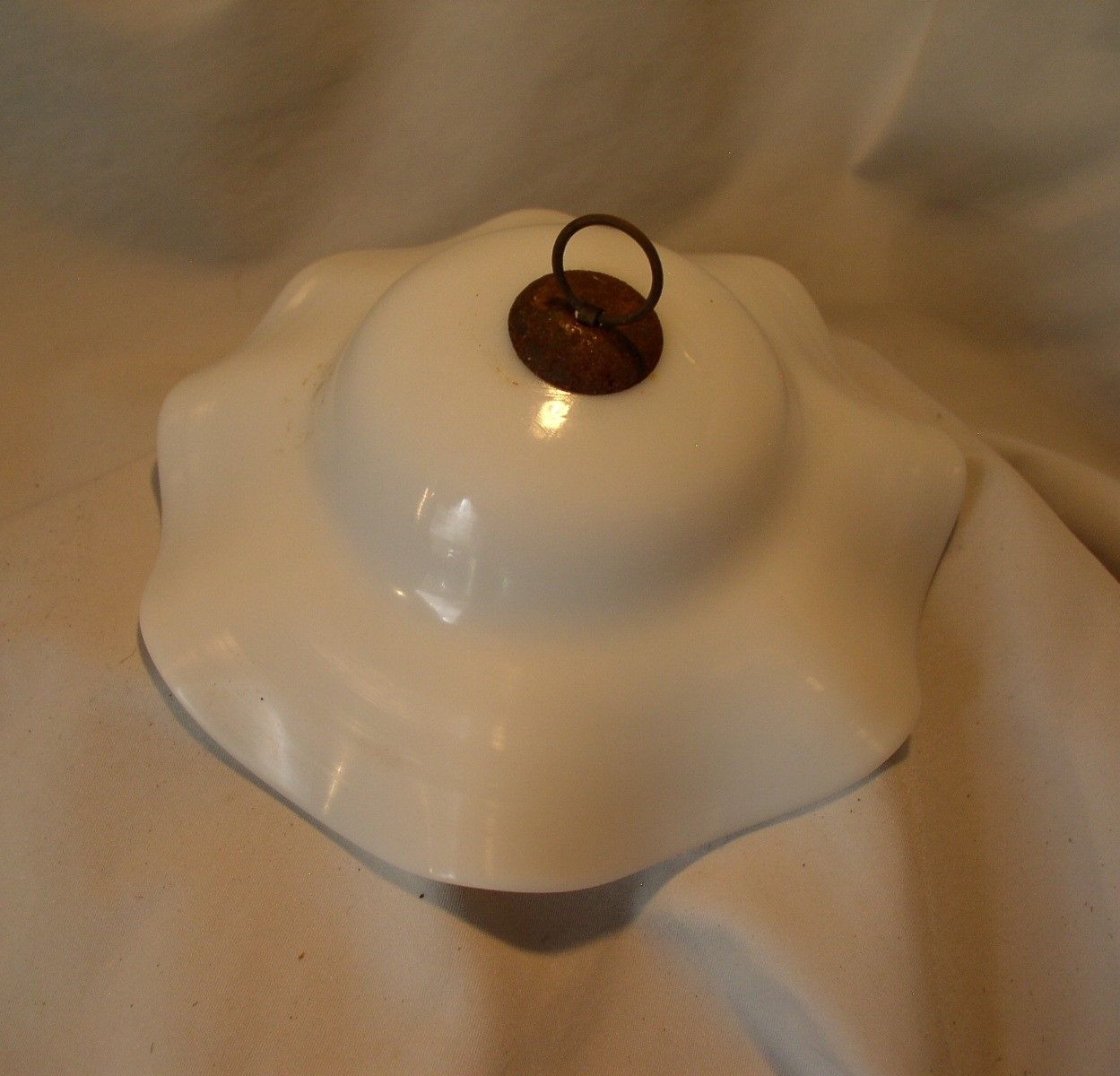 MILK GLASS ANTIQUE KEROSENE LAMP SMOKE BELL WITH SUSPENSION RING