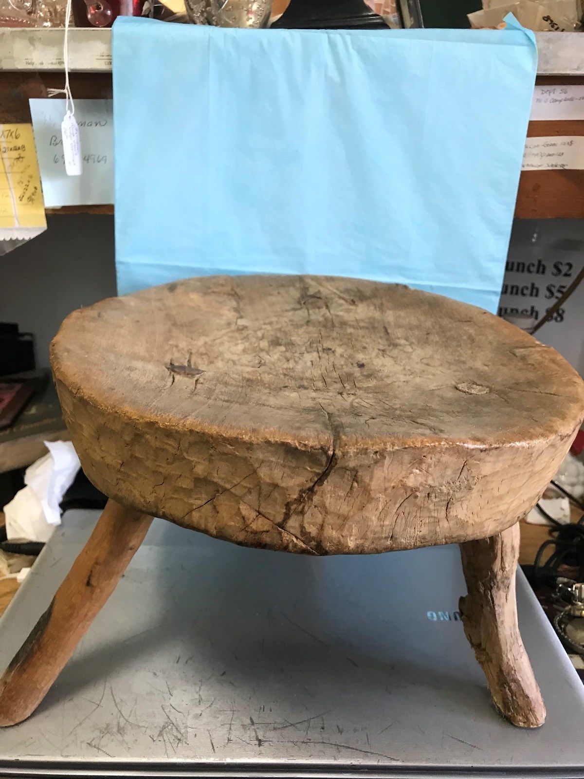 Title (ebay affiliate link): ANTIQUE PRIMITIVE THREE-LEGGED STOOL----------------------------------j