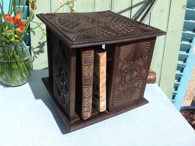 Antique Victorian Jacobean Revival Small Revolving Bookcase Carved Oak Naive Art