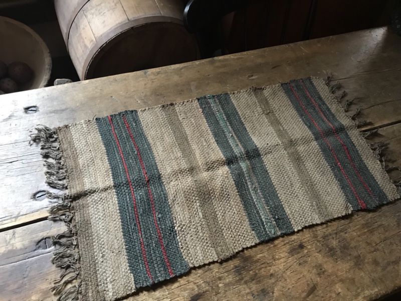 Title (ebay affiliate link): LONG Antique Candle Mat Table Rug Runner Brown & Blue Country AAFA Textile