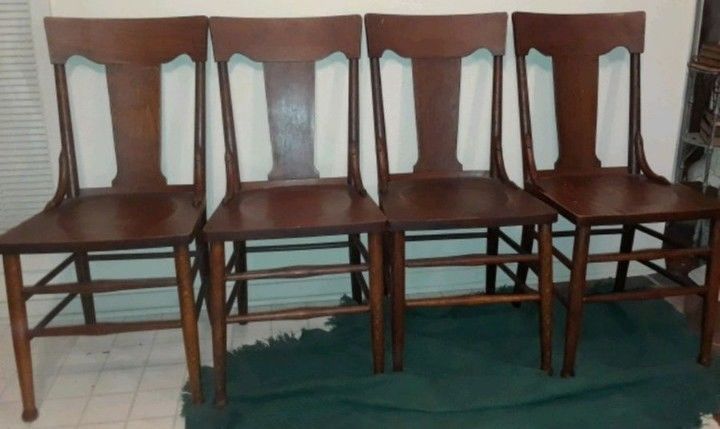 Title (ebay affiliate link): Set of 4 Antique Oak Chairs Heywood Brothers & Wakefield Co. Chicago
