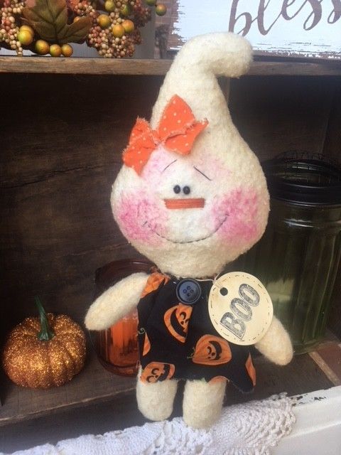 Title (ebay affiliate link): Primitive Sweet Halloween/Fall Ghost Stump Doll #3*GracieLouOriginals*