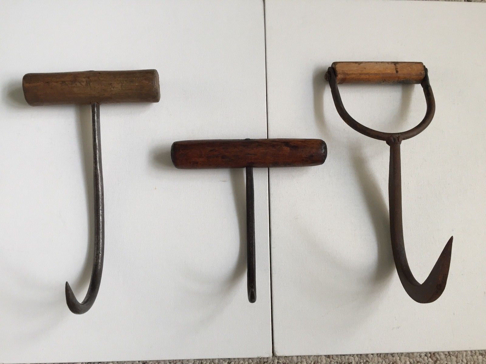 Title (ebay affiliate link): Three Antique Wood & Metal Hooks Used For Hay Bales or Longshore Work