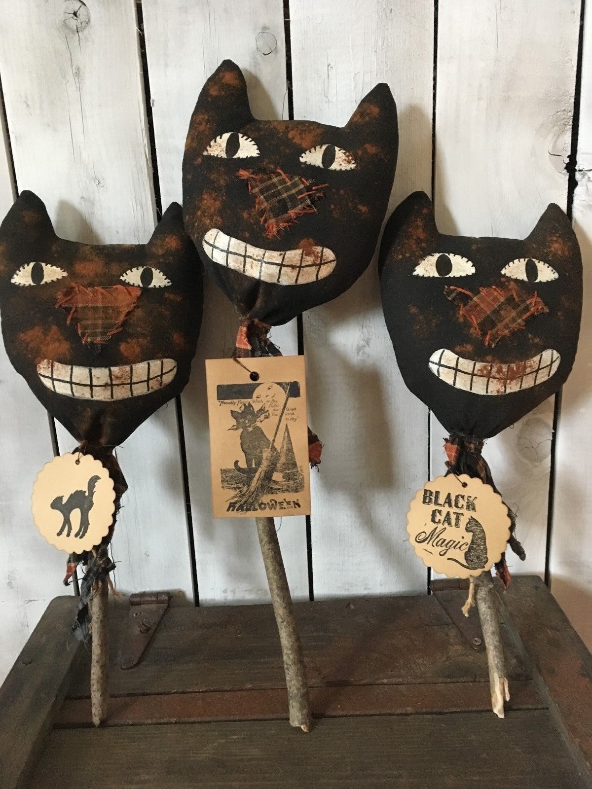 Title (ebay affiliate link): Primitive Halloween Doll Pokes Black Cat Folk Art Cat Doll Crock & Jars Rusty