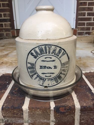 Title (ebay affiliate link): Antique Stoneware Crockery Sanitary Poultry Fountain No. 1 With Base