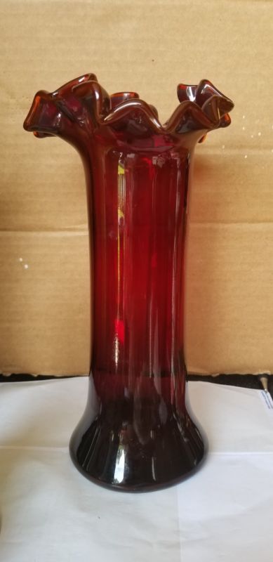 Title (ebay affiliate link): Vintage Ruby Red Depression Glass Vase With Ruffled Edge