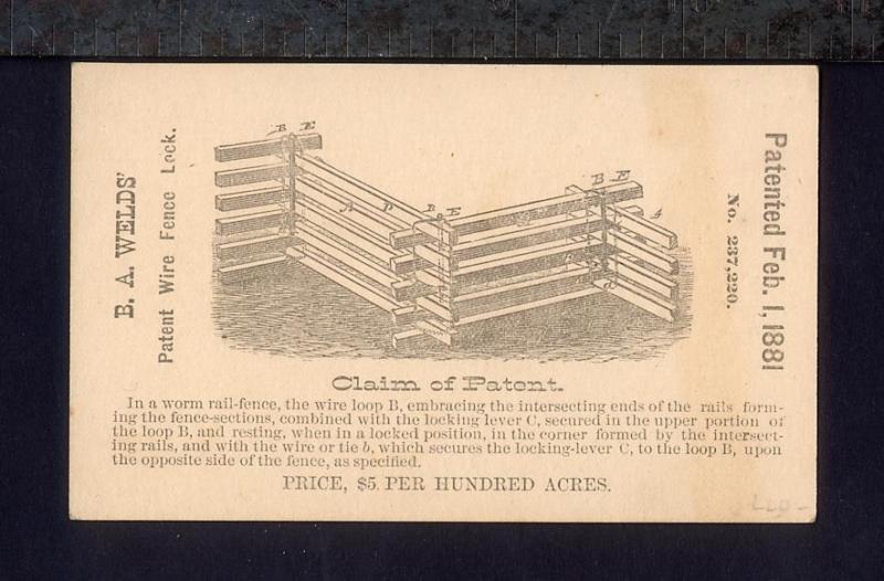 WELDS PATENT WIRE FENCE LOCKS Trade Card James Read West Salem Ohio