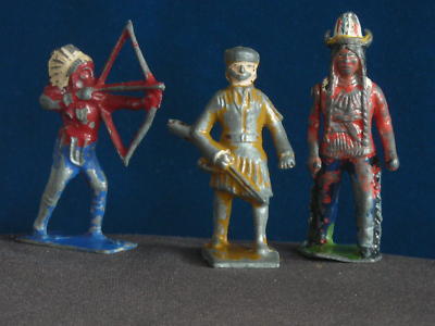 TOY LEAD CAST METAL MOUNTAIN MAN AND 2 INDIANS (2)