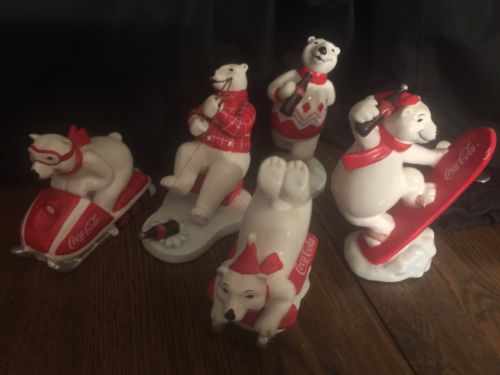 Title (ebay affiliate link): 5 adorable 1995 Coca Cola Polar Bears Figurines discontinued