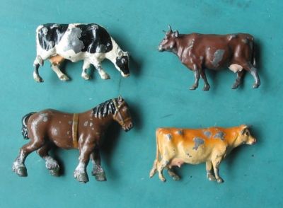 Four Vintage Britains Farm Animals Cows and Work Horse