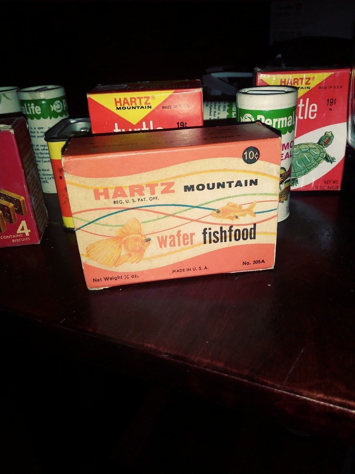 Title (ebay affiliate link): VINTAGE box "HARTZ MOUNTAIN WAFER FISH FOOD. *still has food*