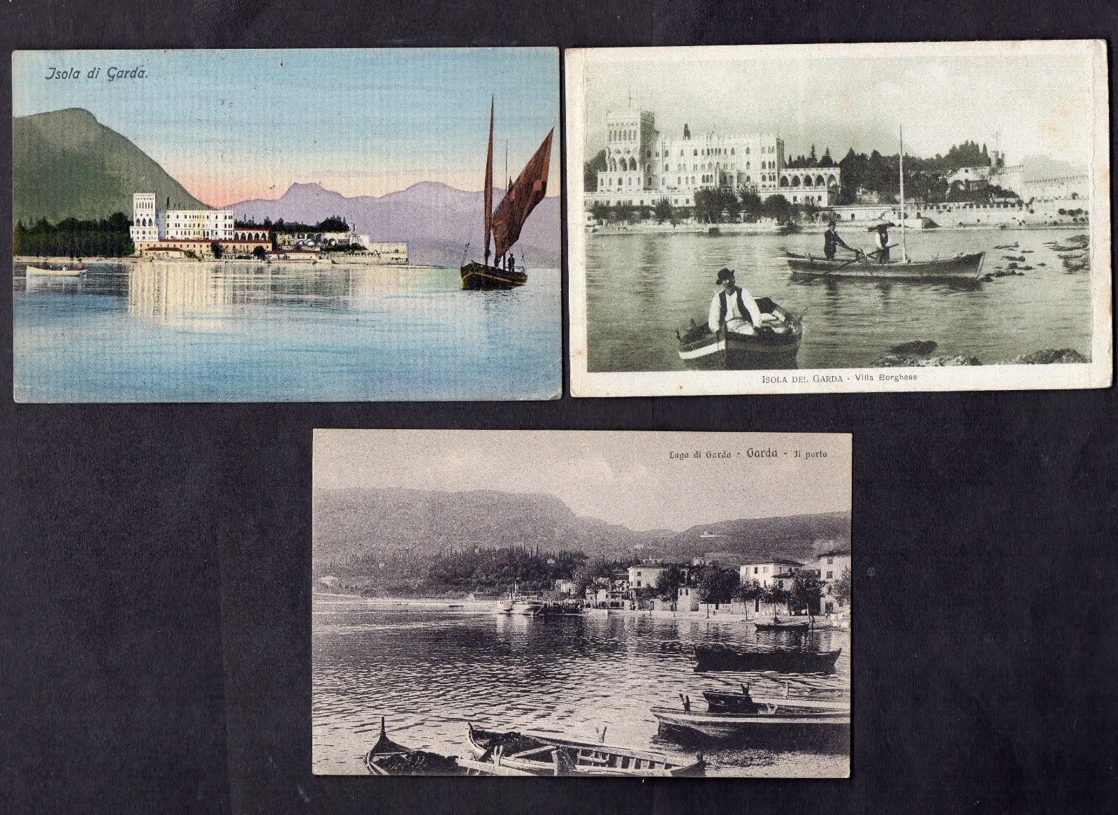 Title (ebay affiliate link): LAKE GARDA.ISOLA DI GARDA.GARDA PORT.1908-18.3xDIFF''T COLOR & B&W PC''S.