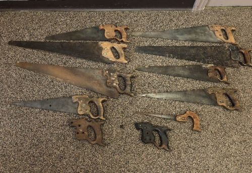 Title (ebay affiliate link): Lot Of 9 Vintage Antique Saws Plus Two Handles With Wear Rusty Disston Saw