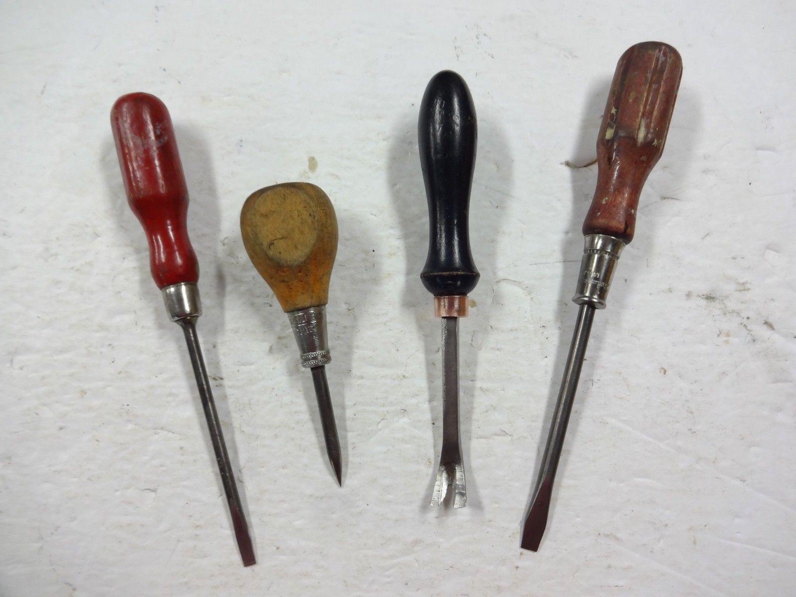 VINTAGE LOT OLD WOOD HANDLED TOOLS BRIDGEPORT STANLEY AWL UPHOLSTERY VERY GOOD