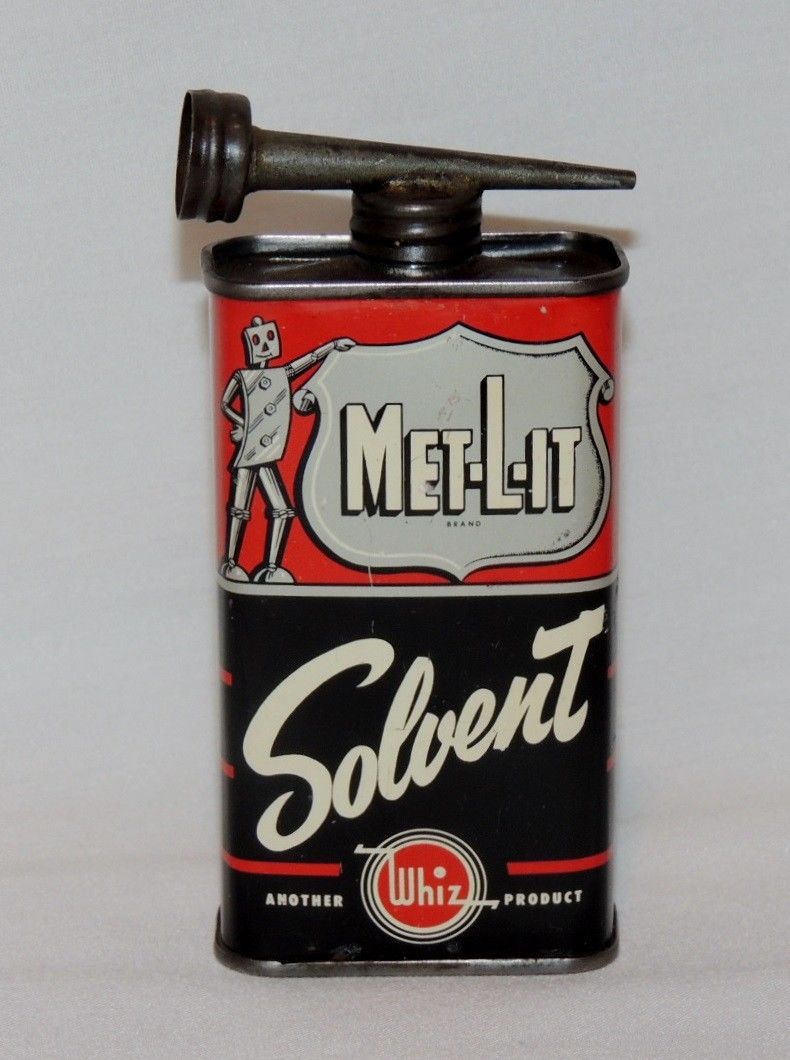 Vintage MET-L-IT Solvent Tin w/ funnel top ~ Man Robot WHIZ - RARE