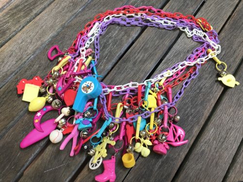 Title (ebay affiliate link): Vintage 80''s Plastic Bell Charm Necklace Retro Clip-On 1980 5 Chains 36 Charms