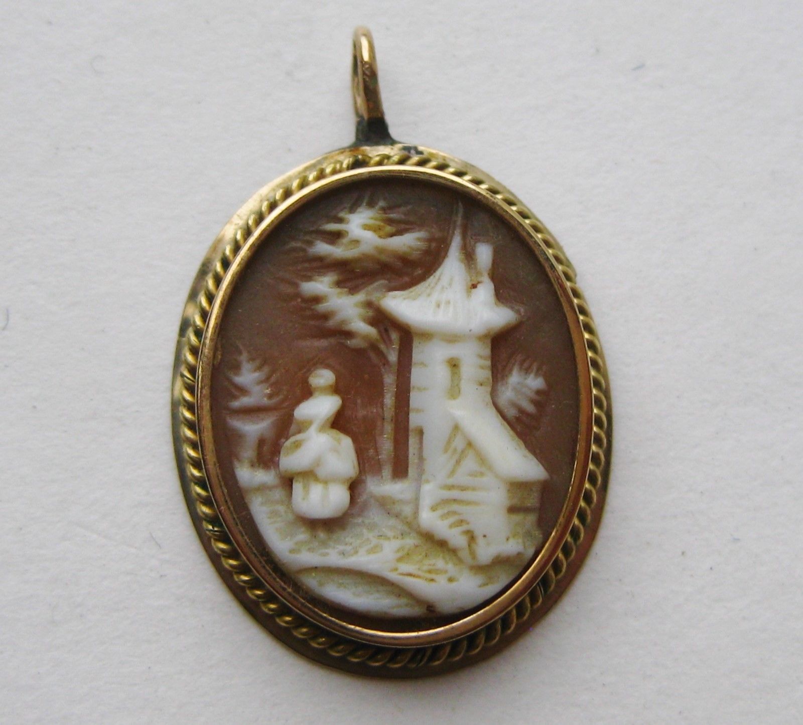 Title (ebay affiliate link): Fine Antique Victorian 14k Gold Carved Shell Cameo Necklace Pendant