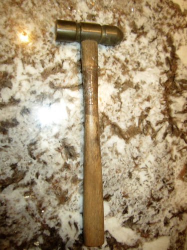 Title (ebay affiliate link): VINTAGE UNKNOWN MAKER BRASS NON MARRING HAMMER 6 OZ. HANDLE HAS CRACK