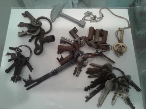 Title (ebay affiliate link): Lot of 42 Antique Train Barrel School Folding Clock Register Heart Clock Keys!