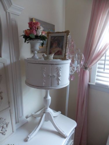 Title (ebay affiliate link): OLD VTG. ANTIQUE WHITE BARBOLA ROSE SWAG ROUND ACCENT TABLE W/ BONUS ITEMS
