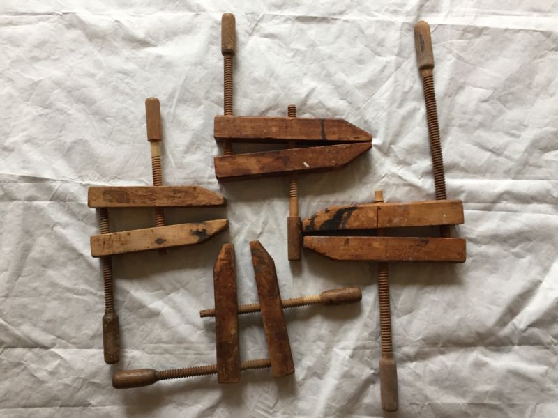 Title (ebay affiliate link): Antique Baker Furniture Wood Screw Clamps Woodworking Tool