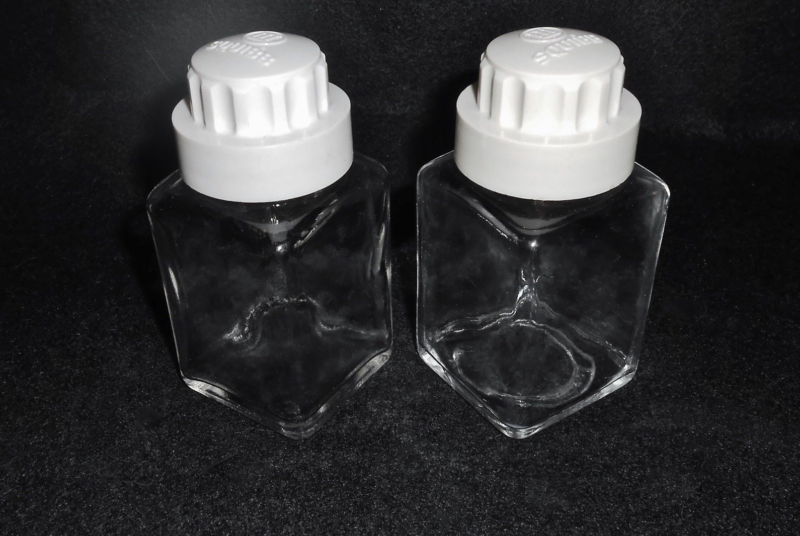 Title (ebay affiliate link): VINTAGE SQUIBB TALL GLASS APOTHECARY GLASS JARS - LOT OF 2with WHITE LIDS
