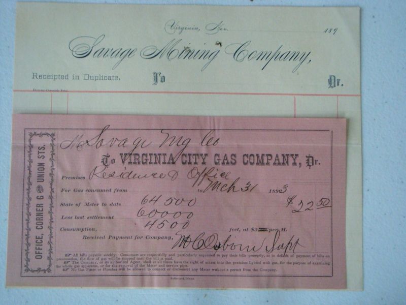 Title (ebay affiliate link): 1893 GAS BILL SAVAGE MINING COMPANY VIRGINIA NEVADA