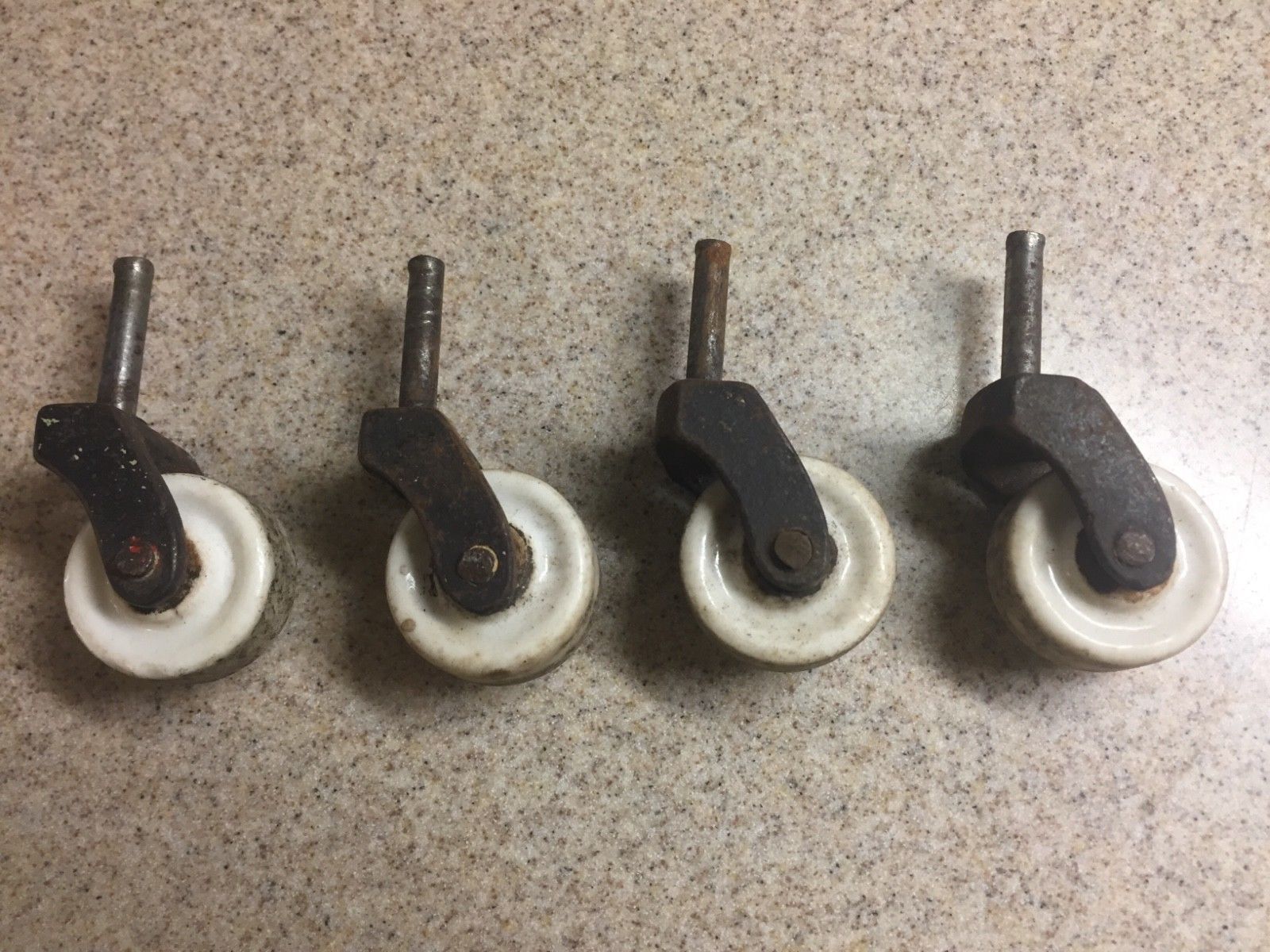 Title (ebay affiliate link): 4 VINTAGE PORCELAIN WHEEL CASTERS FURNITURE ROLLERS CABINET 1 1/8" WHEEL