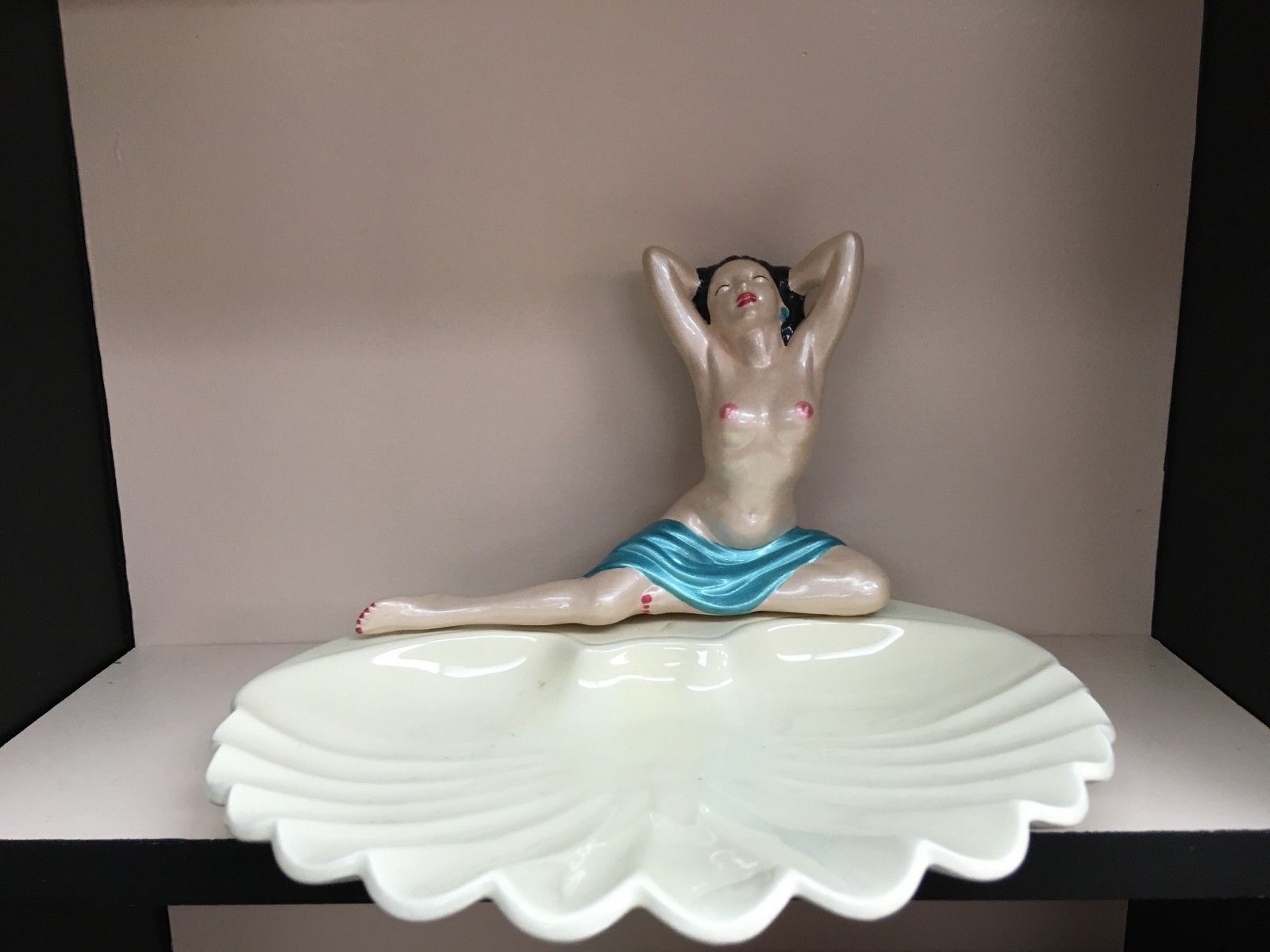 6" NUDE WOMAN FIGURINE NAKED LADY FIGURINE ERA ON SHELL DISH PLATE
