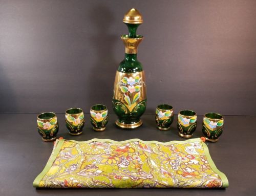 Title (ebay affiliate link): Antique Hand Painted 24kt Murano Glass Decanter Glasses Set