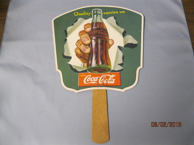 Title (ebay affiliate link): ORIGINAL VINTAGE COCA COLA HAND FAN ~ ICE COLD BOTTLE ~ 1940''S