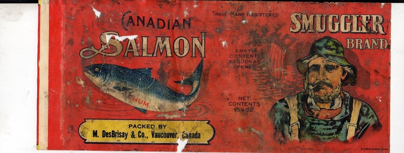 Title (ebay affiliate link): Antique Tin Can Paper Label Smuggler Brand Canada Salmon DesBrisay Packing Co