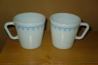 Vintage Pyrex Milk Glass Snowflake Mug Pair x 2