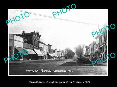 OLD LARGE HISTORIC PHOTO OF ODEBOLT IOWA, THE MAIN STREET & STORES c1920