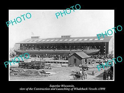OLD LARGE HISTORIC PHOTO OF SUPERIOR WISCONSIN, THE WHALEBACK BOAT BUILDERS 1890