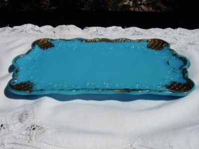 EAPG Opaque Blue Milk Glass Dresser Or Vanity Tray