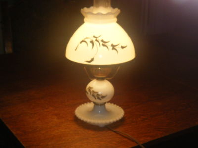 WHITE MILK GLASS ELECTRIC LAMP ANTIQUE LOOK