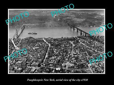 OLD LARGE HISTORIC PHOTO OF POUGHKEEPSIE NEW YORK, AERIAL VIEW OF THE CITY c1930