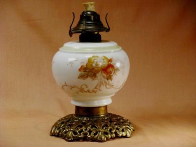 Antique Victorian Milk Glass Kerosene Lamp Floral Base