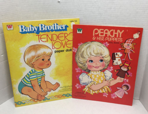 Title (ebay affiliate link): Vintage/Whitman PEACHY & HER PUPPETS paper dolls 1974 & baby brother