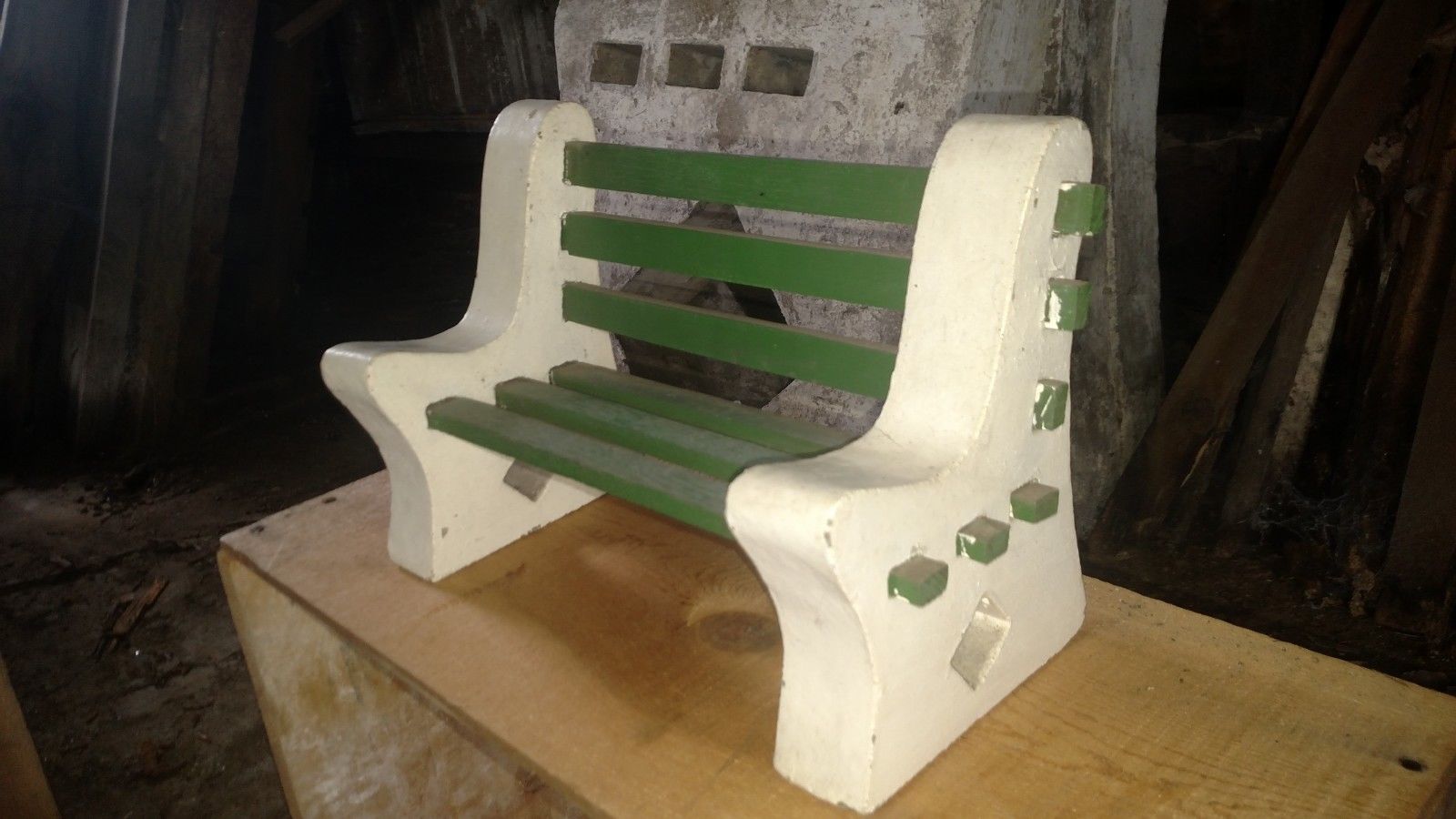 Title (ebay affiliate link): Vintage Salesman Sample Concrete Park Bench, Antique Sales Sample Garden Bench