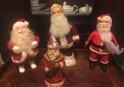 Title (ebay affiliate link): 4 Antique Vintage Santa Claus Figures (Cloth, Felt, Cotton, Composition)