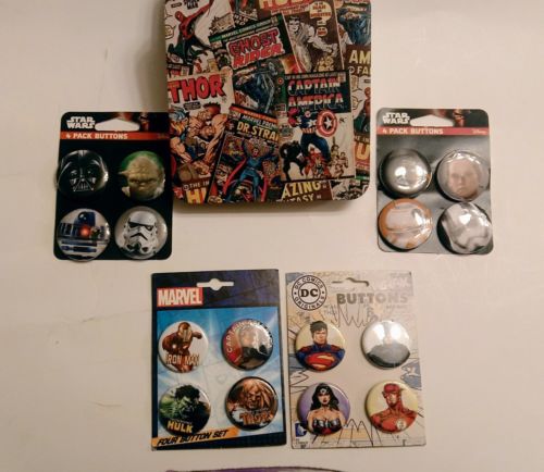 Title (ebay affiliate link): LOT OF 16 NEW PINS FROM STARWARS AND DC MARVEL- COME IN NEAT TIN- NEW
